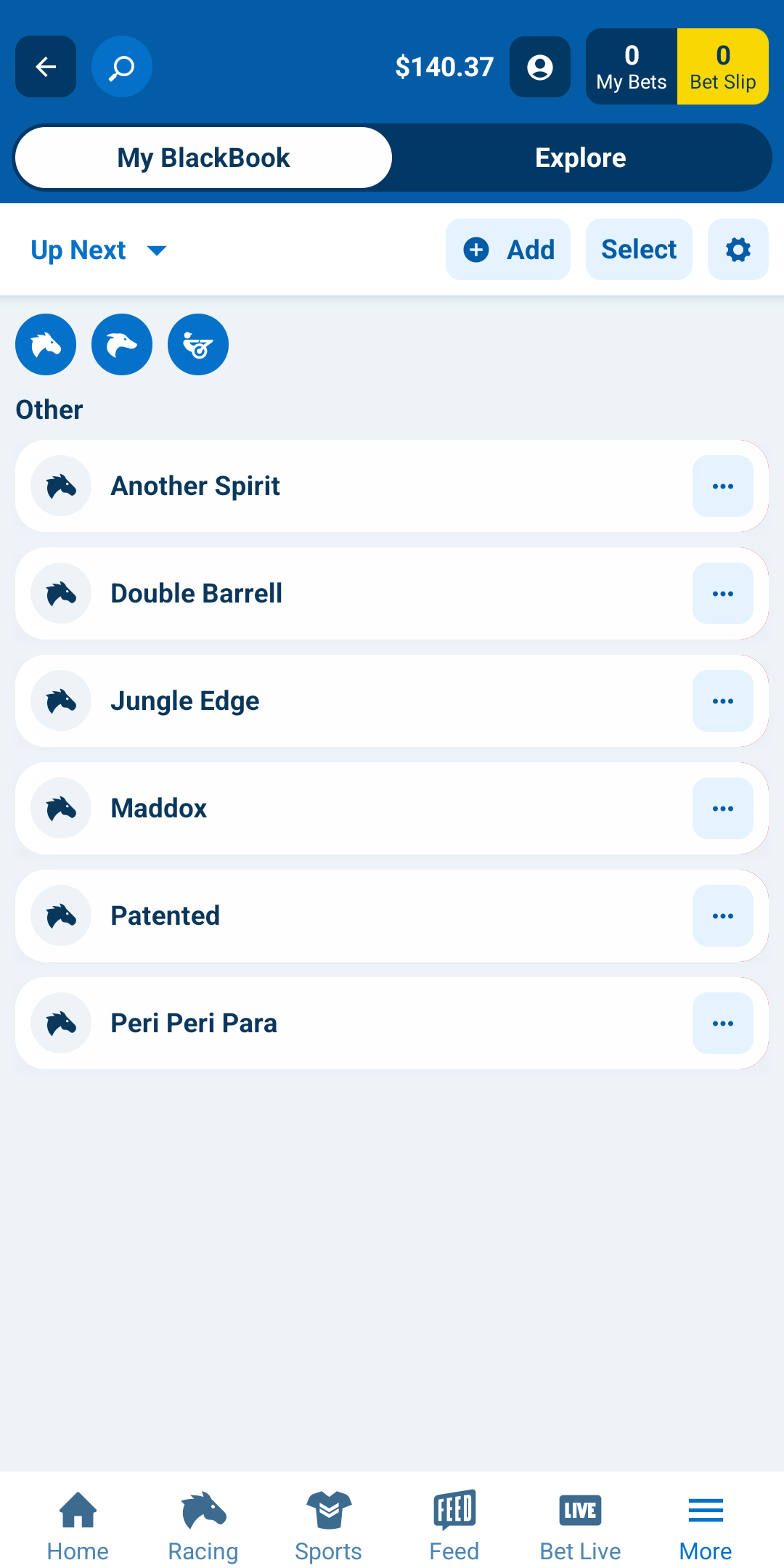 BlackBook allows you to follow your favourite thoroughbred, harness and greyhound selections and receive notifications when they're scheduled to race.