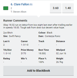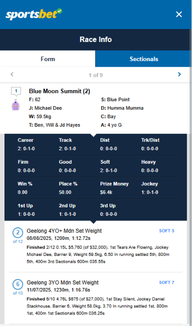 Each runner in the race will have some information available to you, lets have a look at Kandos Tiger below.
