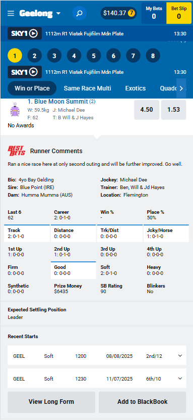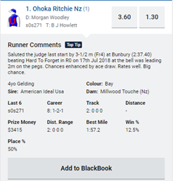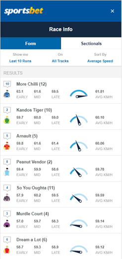 Each runner in the race will have some information available to you, lets have a look at Kandos Tiger below.
