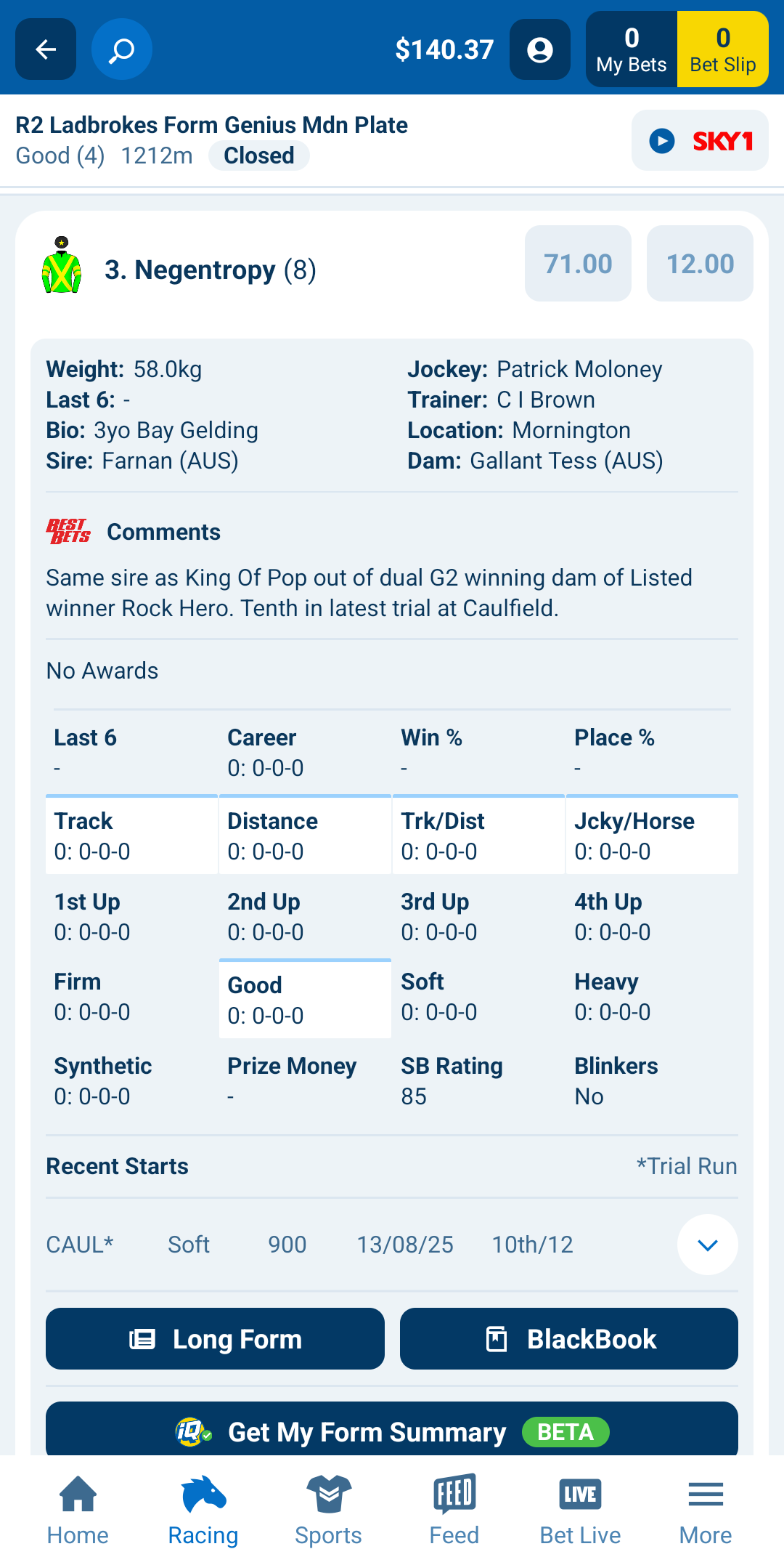 - Race Card – Navigate to the race card and click on the runner to expand the short form and click on Add to BlackBook at the bottom
