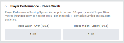 All points are based on NRL.com statistics. Player Performance Bets will be voided on any player who is not in the starting 13.