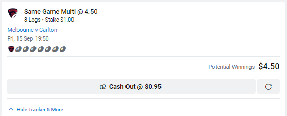 Important! Same Game Multi cash out is only available on AFL games at this point in time.