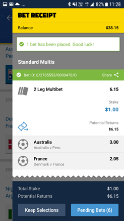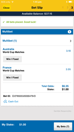 You will then receive a bet receipt, confirming the bet has been placed successfully.